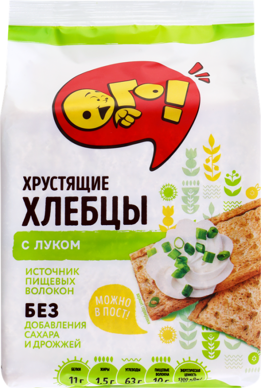 Хлебцы ОГО! С луком изготовлены исключительно из натуральной гречневой муки, без сахара и каких-либо добавок. Поэтому их можно давать детям, не опасаясь появления аллергии или других проблем. Продукт и полезен, и очень вкусен. Воздушные хлебцы станут отличной альтернативой хлебобулочным изделиям, спасут от голода и не навредят фигуре. Они идеально сочетаются с супами, горячими блюдами и салатами. В их составе только натуральные ингредиенты, нет усилителей вкуса, ароматизаторов или красителей. Зато есть пшеничные отруби – нерастворимые пищевые волокна, которые помогают выводить из организма шлаки и токсины, ускорить обмен веществ и способствуют похудению. Хлебцы могут стать самостоятельным перекусом или полезным снеком во время просмотра фильма, сериала, на прогулке или в поездке. Добавьте к ним творожный или плавленый сыр, паштет, мясо или кусочек рыбки – также вкусно, как с хлебом, но полезнее для фигуры.