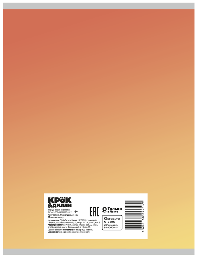 Тетрадь КРОК&ДИЛЛИ А4 80 листов, на скрепке, в клетку прекрасно подходит для письма шариковой, гелевой или капиллярной ручкой. Внутренний блок – офсетная бумага повышенной плотности, белизна – 100%, линовка – клетка. Мягкая обложка с дизайном. Можно использовать для обучения, ведения записей, составления списков, отлично подойдет для старшей школы, вуза, дома и офиса.