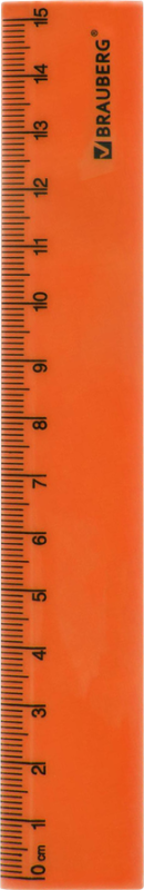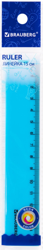Линейка BRAUBERG Neon пластиковая 15см, непрозрачная, в ассортименте, 1шт