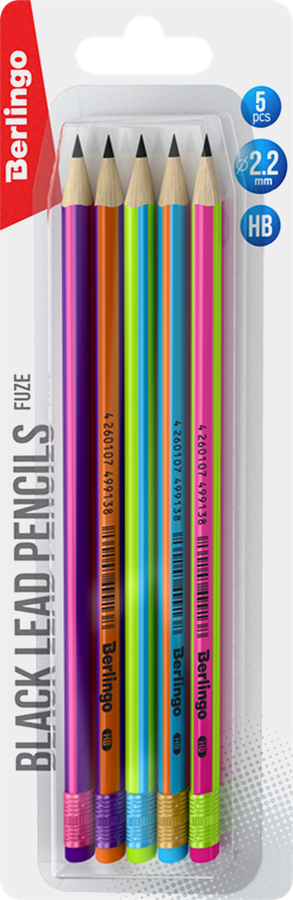 Набор чернографитных карандашей BERLINGO Fuze HB, трехгранные, с ластиком, Арт. BP00865_5, 5шт