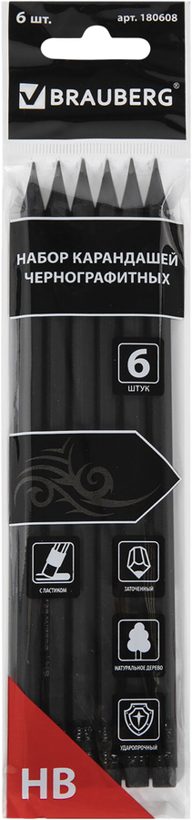 Набор чернографитных карандашей BRAUBERG Black Jack НВ, Арт. 180608, 6шт