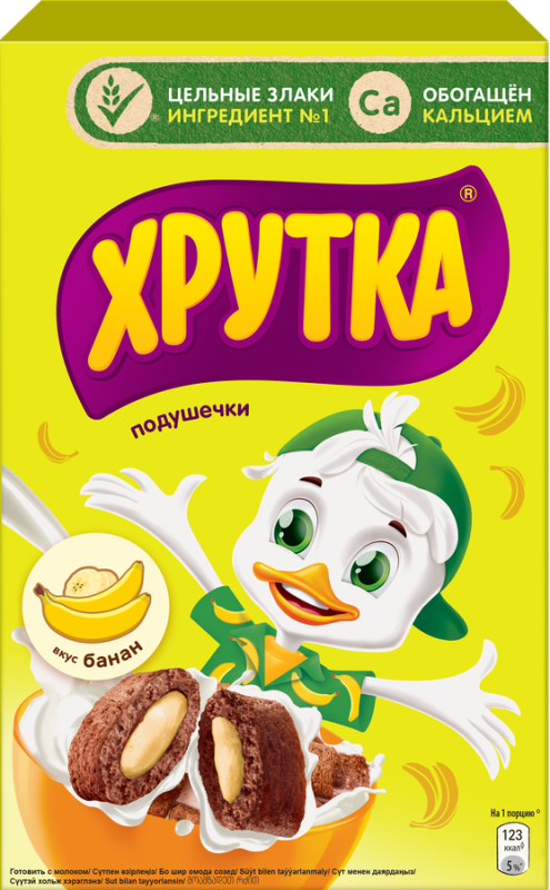 Готовый завтрак ХРУТКА Подушечки банановые ‒ это именно то, что нужно! Завтрак является важным приемом пищи и часто задает настроение всему дальнейшему дню. Важной его частью являются сложные углеводы, ведь они наполняют энергией и придают силы. Можно найти их в злаковых подушечках ХРУТКА, которые содержат цельные злаки. Нежная начинка внутри и хрустящая подушечка снаружи приятно удивят своим сочетанием. А яркий вкус банана сделает завтрак незабываемым, ведь банан ‒ один из любимых фруктов как среди детей, так и взрослых. Предложите вариант быстрого готового завтрака всей семье ‒ и близкие оценят утро без суеты на кухне. Наслаждайтесь готовым завтраком ХРУТКА вкус банан и встречайте прекрасное начало нового дня!