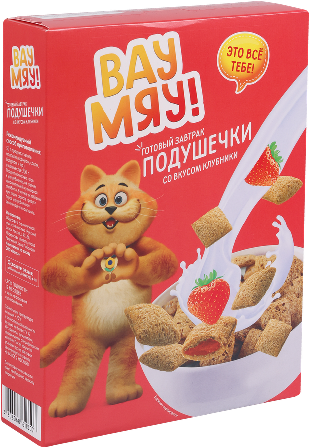 Готовый завтрак ВАУ МЯУ Подушечки со вкусом клубники, 200г