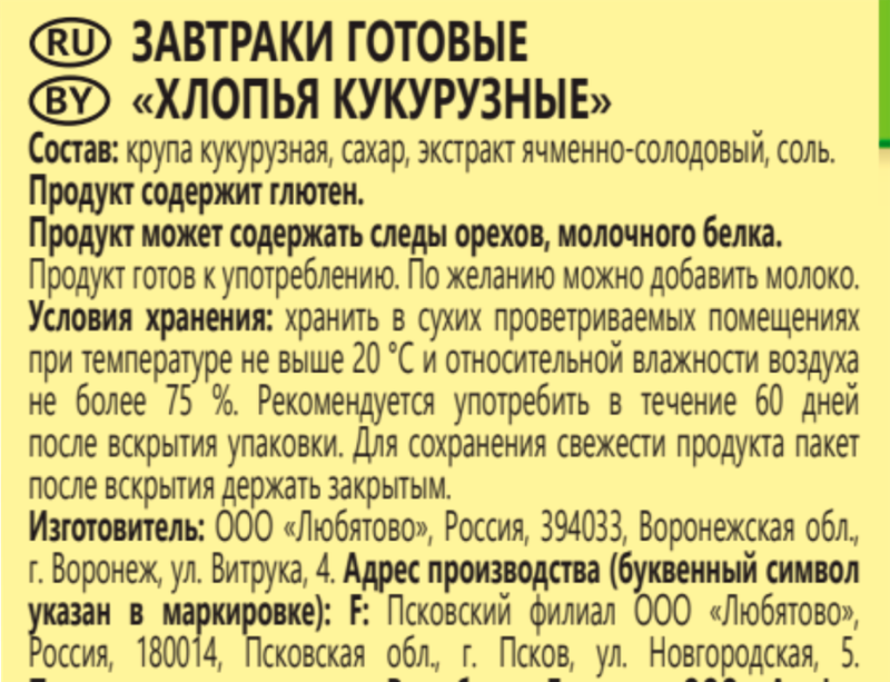 Хлопья кукурузные ЛЮБЯТОВО с их легкой хрустящей текстурой и превосходным вкусом станут отличным вариантом полезного и питательного завтрака для всей семьи. Их любят все поколения. Те, кто предпочитает классику, добавят молоко, а любители экспериментировать – фрукты, ягоды, орехи, мед.