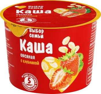 Хлопья овсяные из цельных злаков 73,6% (содержат глютен (клейковину)), сахар, сыворотка молочная сухая, обезжиренное сухое молоко2,7%, клубника 1,9%, соль, натуральный ароматизатор.
