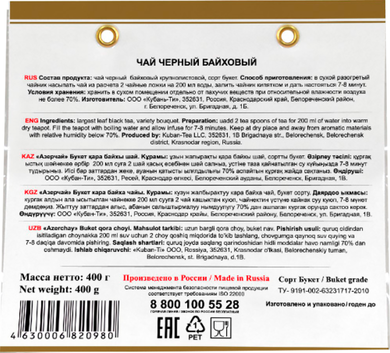 Чай черный АЗЕРЧАЙ Букет байховый листовой, 400г