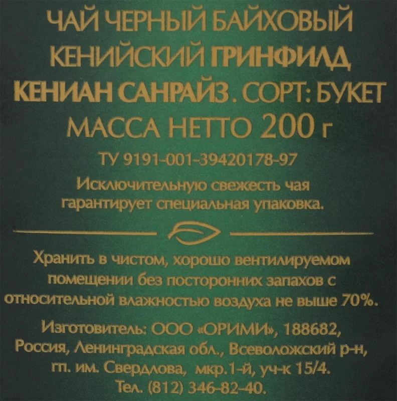 Чай черный GREENFIELD Kenyan Sunrise листовой, 200г