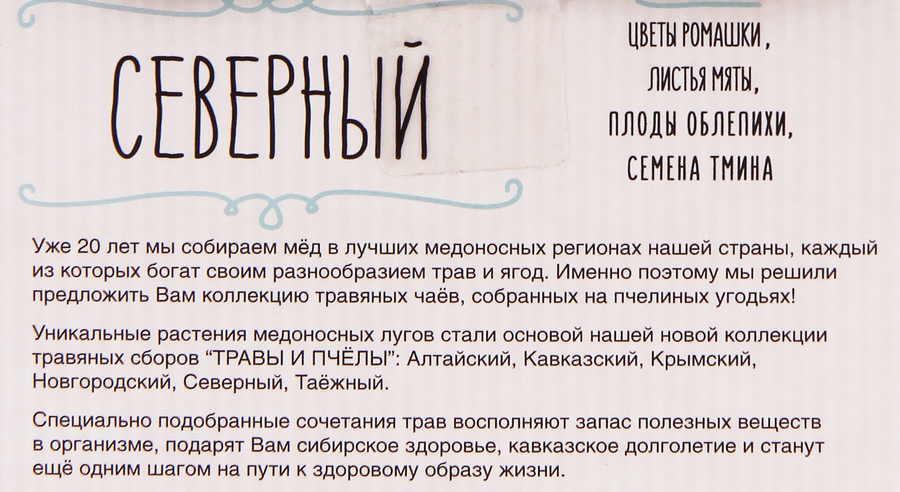Чай травяной ТРАВЫ И ПЧЕЛЫ Северный листовой, 40г