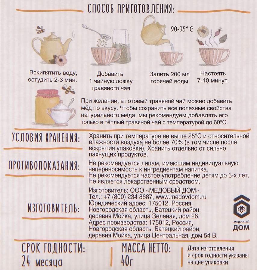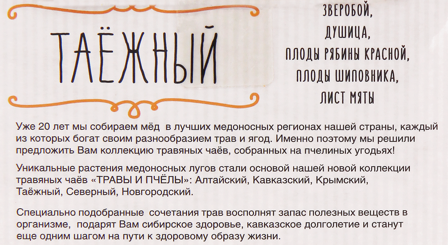 Чай травяной ТРАВЫ И ПЧЕЛЫ Таежный листовой, 40г