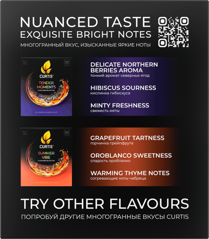 Чай черный байховый индийский, ароматизатор, чабрец, кусочки малины, клубники, земляники, черной смородины и ежевики.