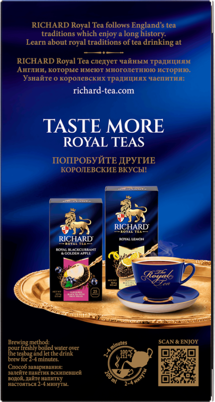 Чай черный RICHARD Royal Berries Selection арома – изысканный черный сорт с сочными ягодами. Взрыв летнего солнца в вашей чашке. Превосходный вкус и аромат этого чая сделает чаепитие особенно изысканным.