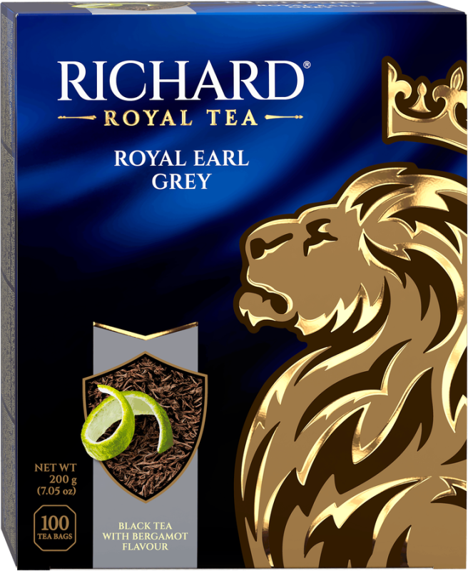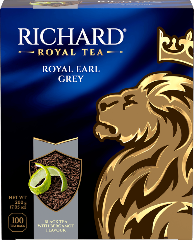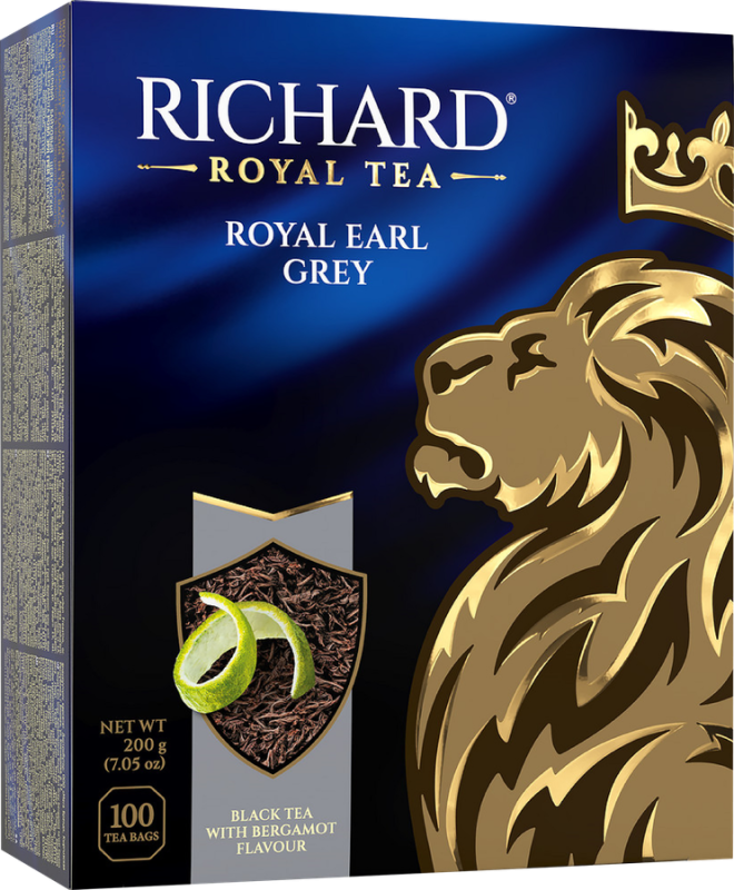 Чай черный RICHARD Royal Earl Grey Цейлонский с ароматом бергамота байховый, 100пак