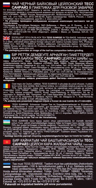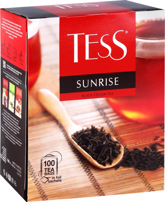 Чай черный TESS Sunrise – это великолепный пример совершенства природного чайного букета. Благородный крупнолистовой цейлонский чай, выращенный на равнинных плантациях, гармонично сочетает свежий пряный вкус, сдержанную крепость и яркий аромат, характерный для дорогих сортов цейлонского чая.