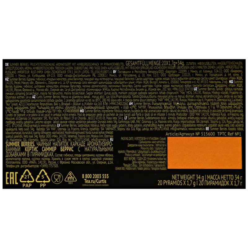 Напиток чайный CURTIS Summer Berries каркаде ароматизированный, 20пир