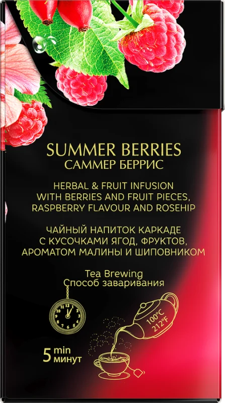 Напиток чайный CURTIS Summer Berries каркаде ароматизированный – ароматный цветочный чайный напиток каркаде с кусочками ягод и фруктов с ярким вкусом спелой малины. Отличается изысканным вкусом, баланс пряных оттенков и яркий аромат присущ только элитному фруктово-травяному чаю. За его чашечкой вы сможете отдохнуть от суеты, замедлиться и перезагрузить свои мысли. А если позвать друзей,то чай не только украсит ваше чаепитие, но и станет главным гостем за праздничным столом. Окунись в атмосферу тепла и уюта вместе с ароматным напитком.