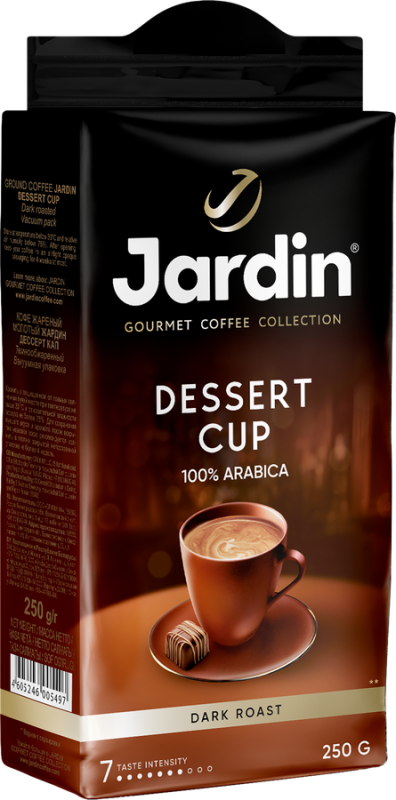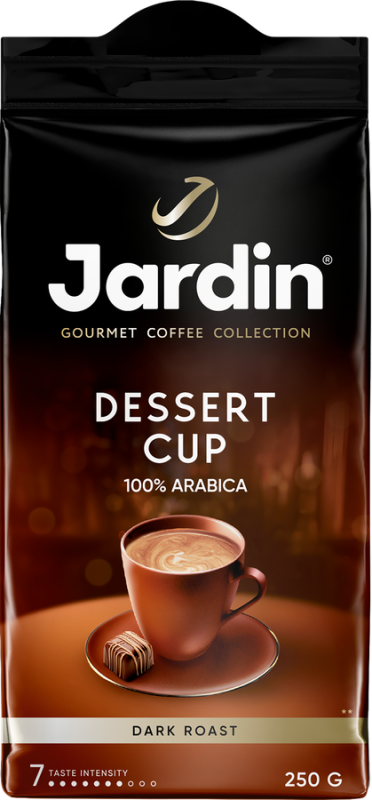 Кофе молотый JARDIN Dessert ‒ тщательно выверенное сочетание зерен арабики из Африки и Центральной Америки и темная обжарка создают плотный насыщенный вкус с деликатной фруктовой кислинкой и долгое послевкусие, наполненное сладостью великолепного десерта.