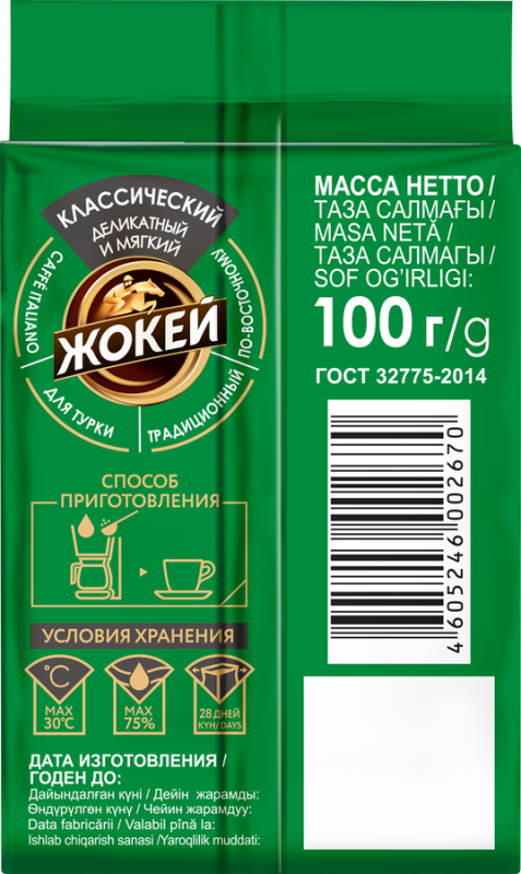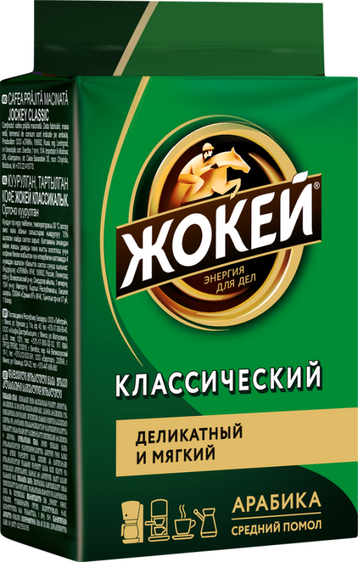Кофе молотый ЖОКЕЙ Классический жареный ‒ сложное, точно выверенное сочетание различных сортов отборной арабики из Бразилии, Мексики и Камеруна. Жокей Классический ‒ это «богатый» кофе с бархатистым ароматом, мягким вкусом и деликатной кислинкой, который раскрывается постепенно, усиливаясь с каждым глотком.