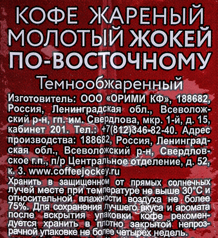 Кофе молотый ЖОКЕЙ По-Восточному натуральный жареный ‒ уникальный бленд сортов Арабики из Бразилии, Эфиопии и Индии. Обладает насыщенным выраженным вкусом с пикантными пряными оттенками, приятным послевкусием и хорошо выраженным ароматом с нотой горького шоколада. Тонкий помол позволяет заваривать кофе прямо в чашке, залив его горячей водой.