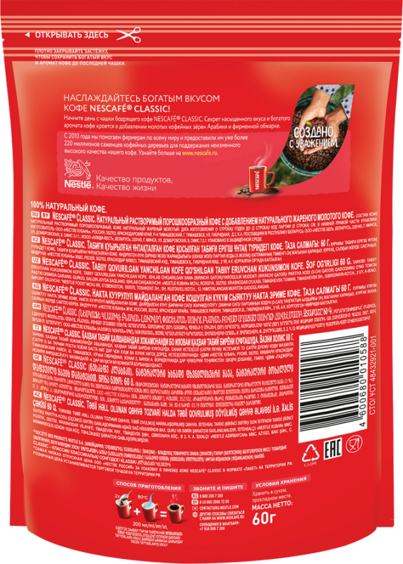 Кофе растворимый НЕСКАФЕ Classic натуральный, 60г