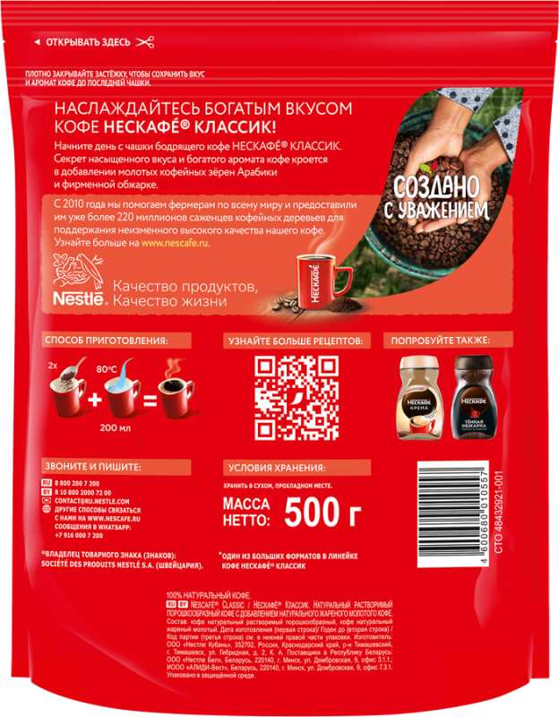 НЕСКАФЕ Classic сочетает в себе растворимый кофе с добавлением молотого. Попробуйте этот напиток – раскройте все богатство вкуса и аромата молотой арабики. Радуйте себя и своих близких насыщенным ароматом бодрящего кофе каждый день.