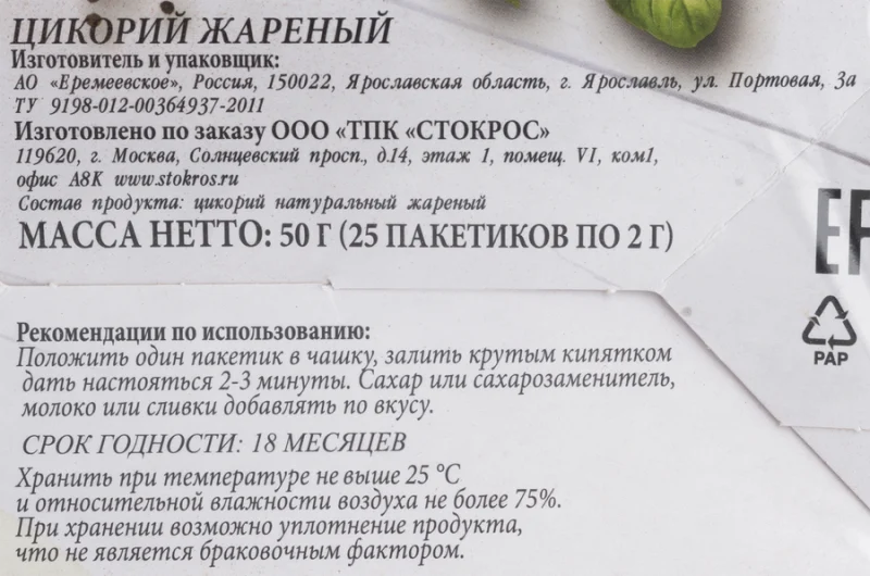 Цикорий РУССКИЙ ЦИКОРИЙ жареный, 25пак