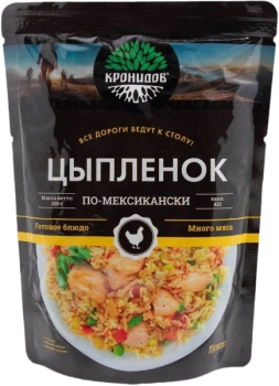 Мясо цыпленка (филе), горошек зеленый, кукуруза сладкая, перец сладкий, лук репчатый сушёный, морковь свежая, крупа рисовая, чеснок, соль поваренная пищевая, перец черный молотый.