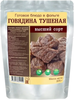 Говядина, крупа гречневая, вода питьевая, масло растительное, лук репчатый сушеный, морковь свежая, соль поваренная пищевая, чеснок сушеный.