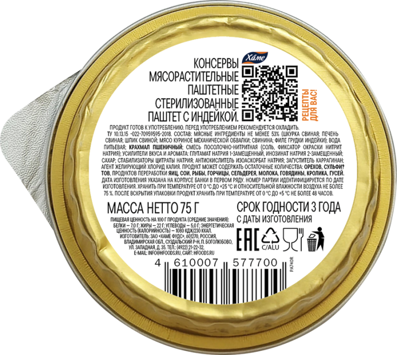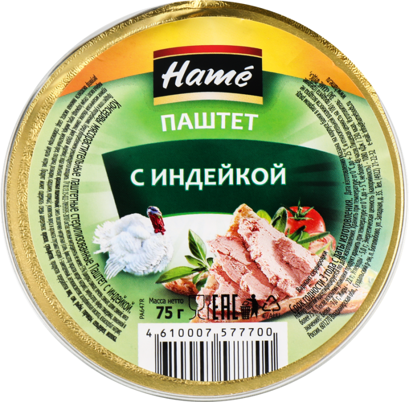 Паштет HAME с индейкой отлично подходит для завтрака и перекуса в течение дня. Он быстро утоляет голод, восстанавливает силы, а также приносит пользу организму. Такой продукт богат белком, витаминами из группы В и А, содержит калий, фосфор, железо и другие элементы.