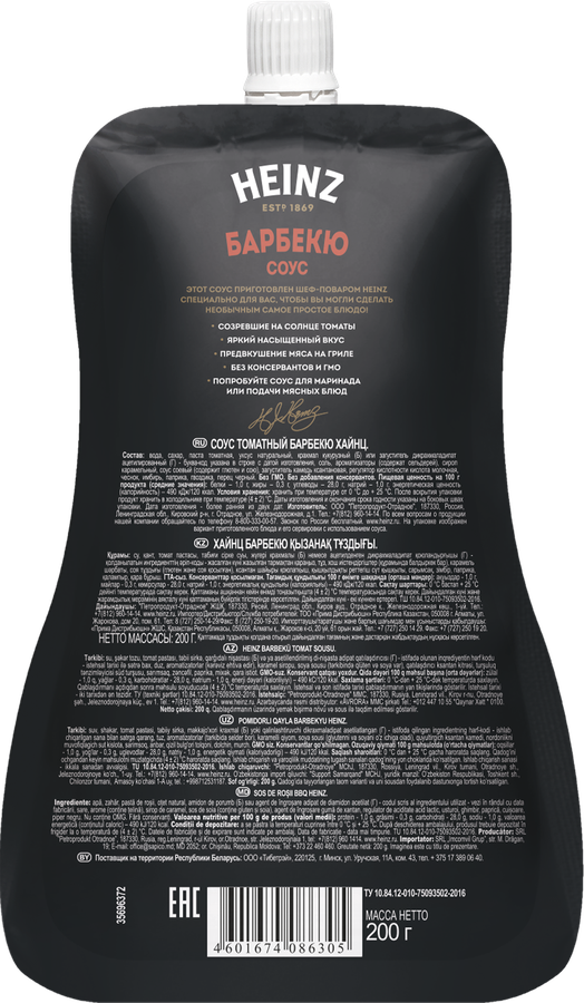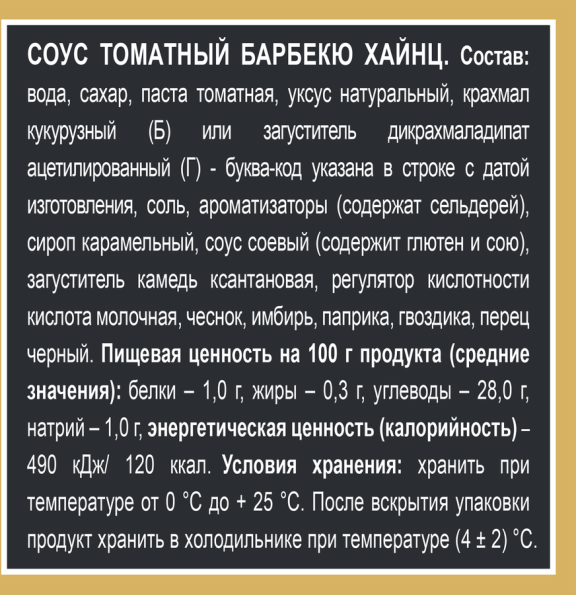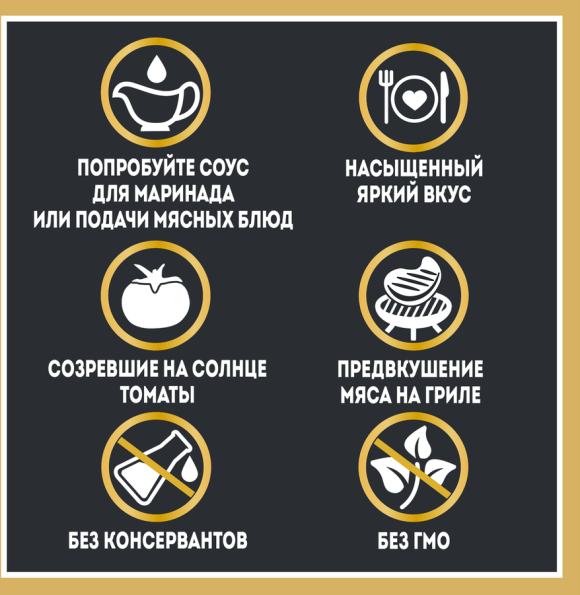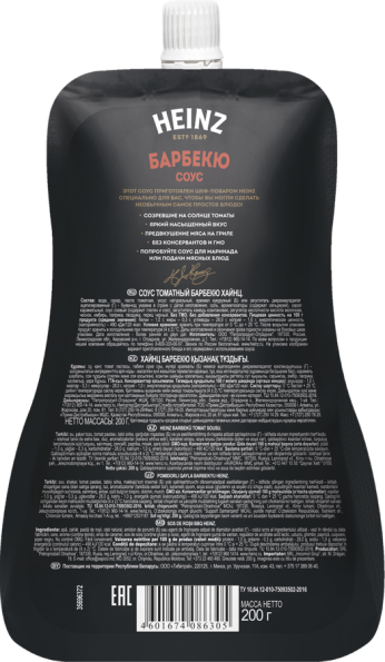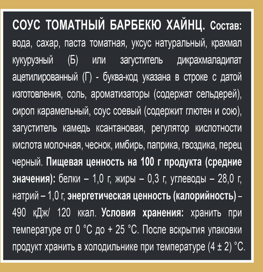 Соус томатный HEINZ Барбекю ‒ это классический соус, приготовленный из натуральной томатной пасты в сочетании с чесноком, паприкой, соевым соусом, имбирем и черным перцем. Соус Барбекю обладает ярким пряным вкусом, а сладость и сочность спелых томатов вместе насыщенным ароматом дымка дополнят любимые блюда и придадут мясу пикантные оттенки. Многолетний опыт, экспертиза и любовь шеф-поваров HEINZ к своему делу позволяют создавать исключительные и невероятно вкусные соусы для кулинарного творчества. Без консервантов и ГМО. Соус Барбекю ‒ идеальный компаньон для мяса на гриле. Соус придаст необходимый акцент вкусу шашлыка, ребрышкам, стейку или куриным крылышкам. Будет также добавлять в сэндвичи и к спагетти.