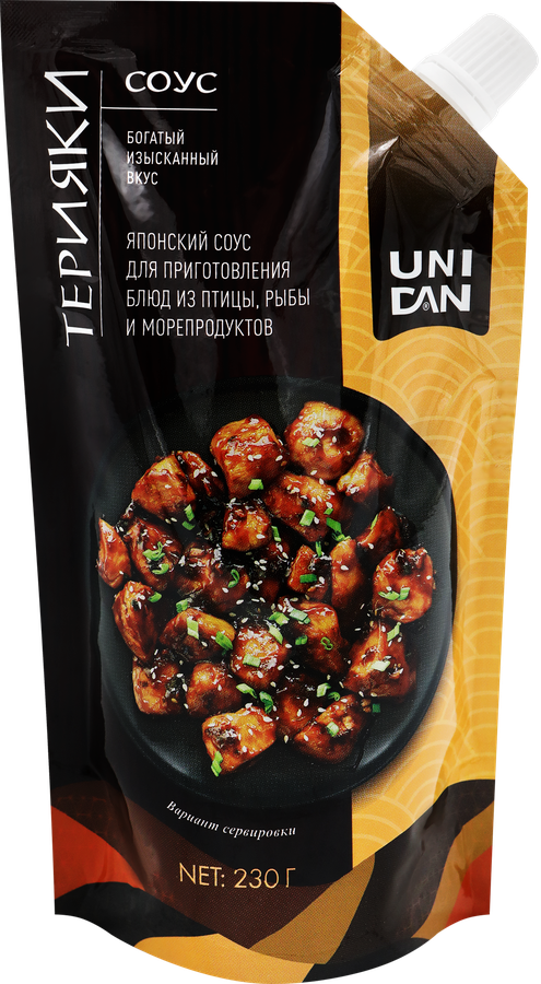 Соус для вторых блюд UNI DAN Терияки – это культовый соус японской кухни, обладающий гастрономическим вкусом. Соус отличается сбалансированностью сладкого и соленого, умеренной сдержанностью и легким приятным ароматом имбиря. Он превосходно подходит для обжаривания птицы, мяса и рыбы, придавая блюдам карамельный блеск. Соус можно использовать для украшения блюд и оригинальной подачи.