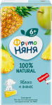 Сок из яблок, сок из ананасов, сахар, регулятор кислотности – кислота лимонная, вода. Изготовлен из концентрированных соков.Объемная доля фруктового сока не менее 45%.