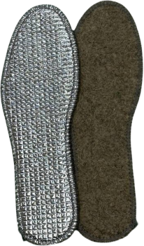 Эти стельки состоят из натурального войлока, пенополиуретана и алюминиевой фольги, что обеспечивает высокие теплоизоляционные свойства. Алюминиевая фольга не пропускает холод снаружи, отражая тепло ступни внутрь.