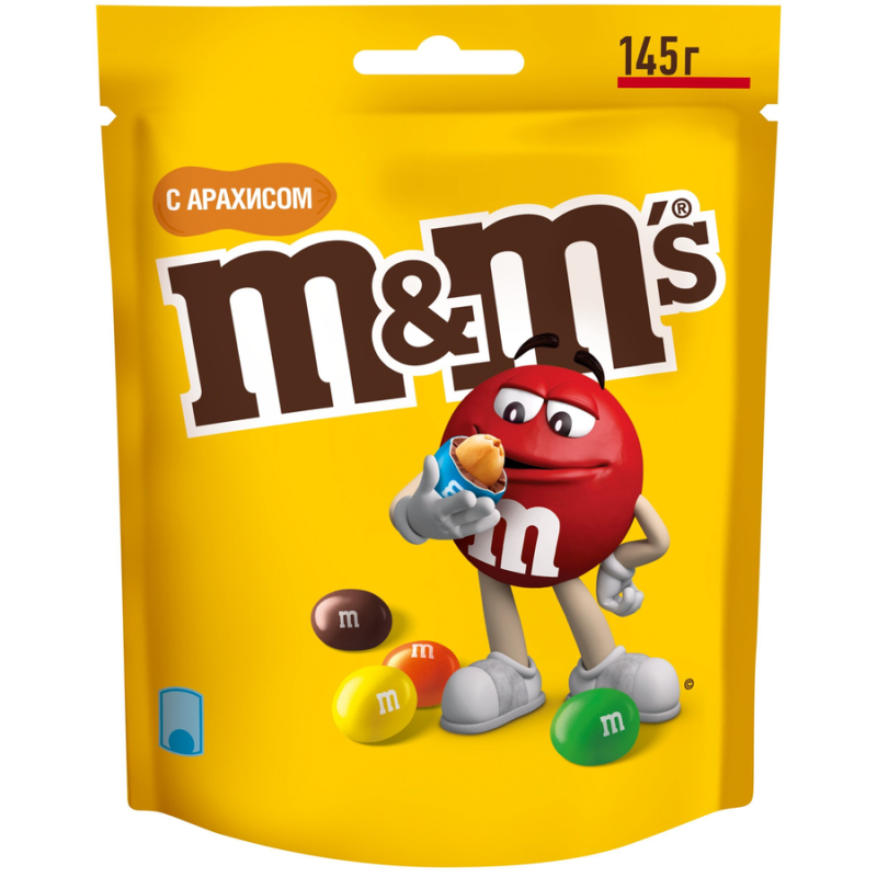 Драже M&M’s с арахисом – популярные шоколадные конфеты с хрустящей цветной корочкой и тающим молочным шоколадом. Добавление соленых жареных орешков делает драже таким полезным и питательным. Удобная упаковка позволяет наслаждаться угощением в любое время. Благодаря яркой расцветке драже можно использовать для украшения тортов и пирожных.