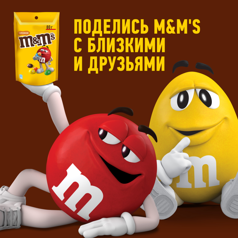 Драже M&M’s с арахисом – популярные шоколадные конфеты с хрустящей цветной корочкой и тающим молочным шоколадом. Добавление жареных орешков делает драже таким полезным и питательным. Удобная упаковка позволяет наслаждаться угощением в любое время. Благодаря яркой расцветке драже можно использовать для украшения тортов и пирожных.