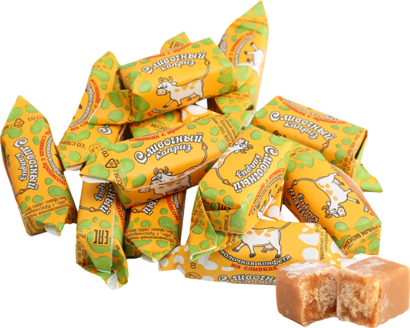 Конфеты молочные На сливках с арахисом и кунжутом ассорти от торговой марки СЛИВОЧНЫЙ КАПРИЗ – молочный десерт, приготовленный по классической рецептуре. В его основе натуральное сгущенное молоко с использованием добавок в виде сливок, кунжута и арахиса. Отличное угощение для всей семьи.