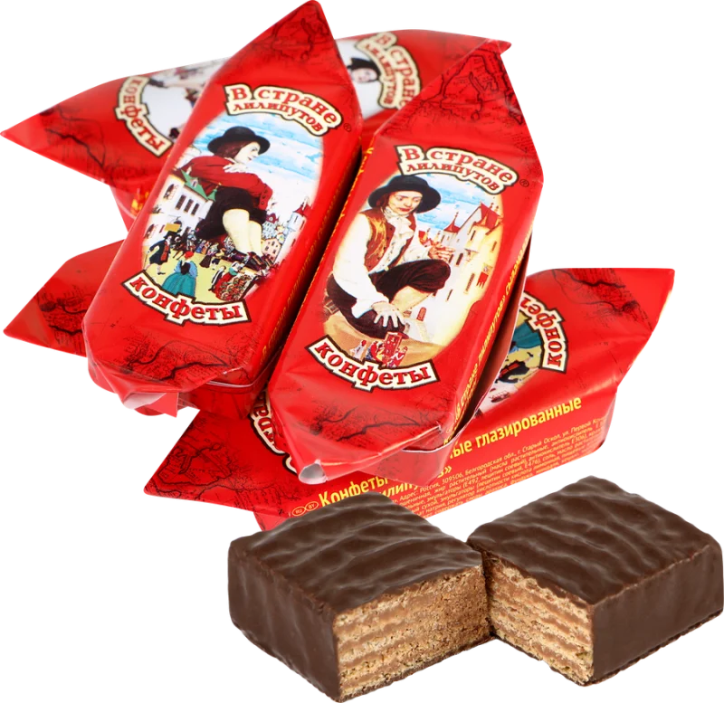 Конфеты СЛАВЯНКА В стране лилипутов – вафельные конфеты в шоколаде. Для производства используются натуральные ингредиенты высшего качества. Без искусственных красителей и ароматизаторов!