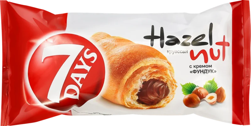 Круассан 7 Days – это питательная порция выпечки, наполненная высококачественной начинкой. Круассан 7 Days удобно упакован и готов к употреблению. Внутри крем фундук.