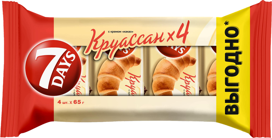 Круассаны 7DAYS 3+1 с кремом какао, 260г
