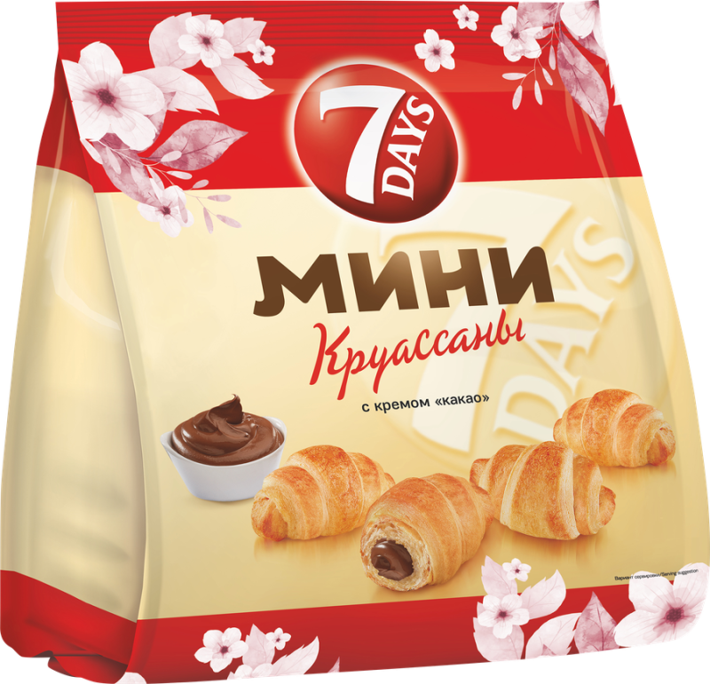 Мини-круассаны с кремом какао от бренда 7DAYS никого не оставят равнодушным. Насыщенный яркий вкус крема какао в каждом мини круассане 7DAYS! Какао – вкус бестселлер. Удобный формат любимых Мини круассанов 7DAYS, если хочется побаловать себя! Мини круассаны 7DAYS – это много маленьких вкусных круассанов в одной упаковке. Множество воздушных слоев и разнообразие кремовых и джемовых начинок никого не оставят равнодушным! Дома или на работе, в одиночестве или с друзьями, насладитесь напитком с мини круассанами 7DAYS и сделайте ваши повседневные моменты особенными!