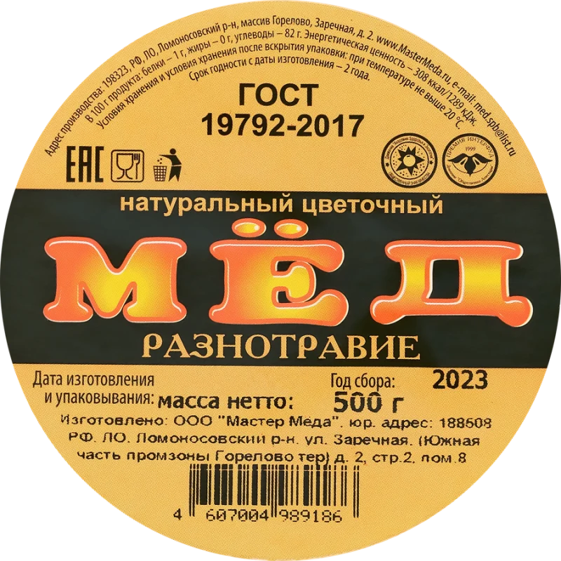 Мед натуральный РАЗНОТРАВИЕ, 500г