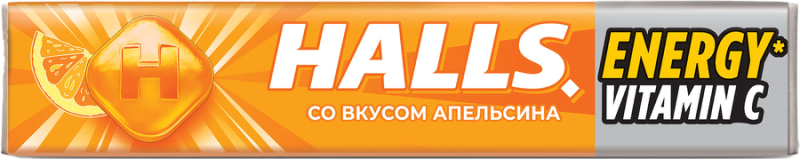 Карамель леденцовая HALLS с витамином С и вкусом апельсина, 25г