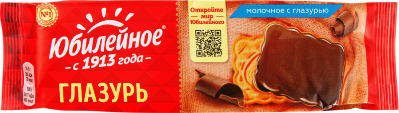 Печенье ЮБИЛЕЙНОЕ молочное с глазурью ‒ печенье в молочной глазури с аппетитным ароматом и нежным вкусом. Хрустящая текстура печенья и тающая во рту шоколадная глазурь ‒ этот дуэт точно растопит сердце всех любителей сладкого. Попробуйте классику сладостей к чаю ЮБИЛЕЙНОЕ! ЮБИЛЕЙНОЕ печенье радует потребителей традиционным вкусом уже более ста лет. Секрет такого доверия кроется в проверенной рецептуре. Для производства печенья ЮБИЛЕЙНОЕ используются отборные ингредиенты, без красителей и консервантов. Также в состав входит витаминно-минеральный комплекс ‒ идеальное сочетание вкуса и пользы! Печенье можно использовать для приготовления аппетитных домашних десертов: пирожное картошка или шоколадная колбаса. Печенье с шоколадной глазурью ‒ отличный повод побаловать себя. Заварите чашку чая, достаньте вкусное печенье и поставьте заботы на паузу. Также компактную упаковку печенья к чаю можно взять с собой на работу, в дорогу или положить в школу детям. Наслаждайтесь любимым вкусом, делитесь нежностью с близкими и