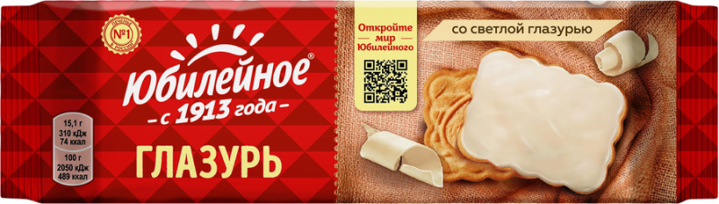Печенье ЮБИЛЕЙНОЕ Витаминизированное со светлой глазурью ‒ это то самое сладкое печенье, которое окунет вас в детство. Нежная шоколадная глазурь на витаминизированном печенье будет прекрасным вкусным десертом на праздничном столе или пикнике, отлично подойдет в качестве полезного перекуса на прогулке, университете или школе, станет идеальной парой к чаю, кофе, соку или молоку.