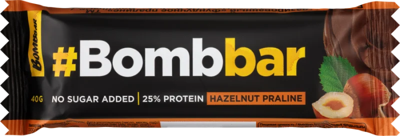 Батончик протеиновый BOMBBAR Фундучное пралине, в шоколаде, 40г