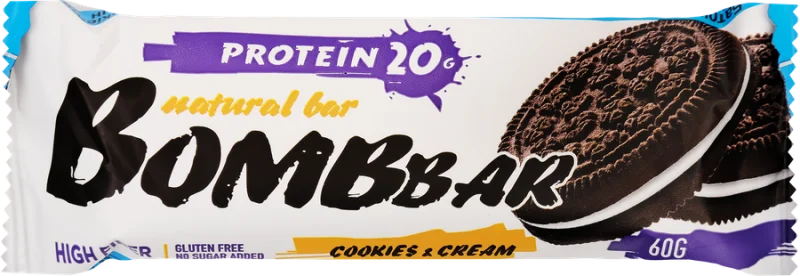 Батончик протеиновый BOMBBAR со вкусом печенье-крем, неглазированный, 60г, 60г