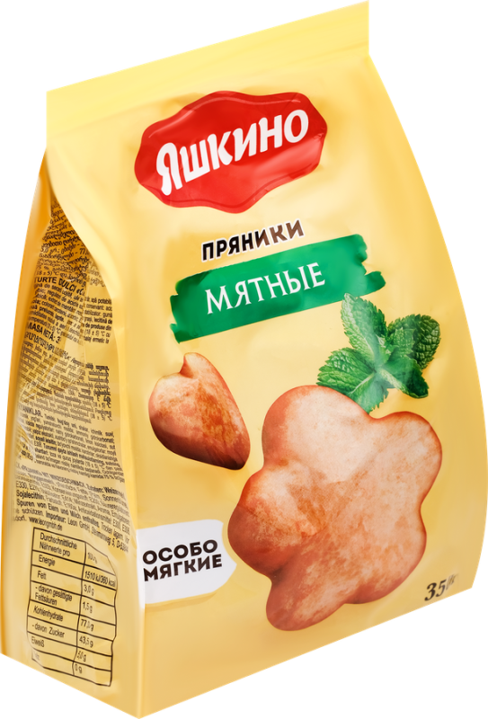 Пряники ЯШКИНО Мятные – аппетитные пряники изготовлены по классической рецептуре из заварного теста, с освежающей мятной нотой. Лакомство покрыто сахарной глазурью. Их можно подать на стол к чаю, кофе, молоку, кефиру, сокам и муссам, взять с собой на работу на полдник или положить ребенку в школу, чтобы тот перекусил во время перемены.