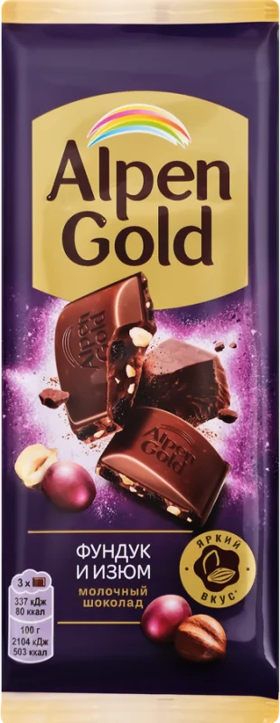 Шоколад ALPEN GOLD с фундуком и изюмом, 80г