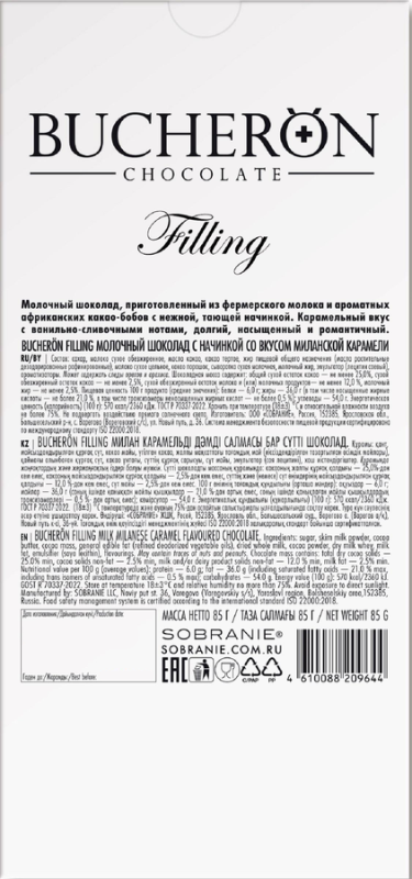 Шоколад BUCHERON Filling с начинкой миланская карамель, 85г