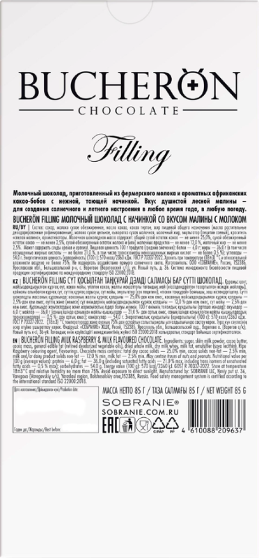 Шоколад молочный BUCHERON Filling малина с молоком, 85г
