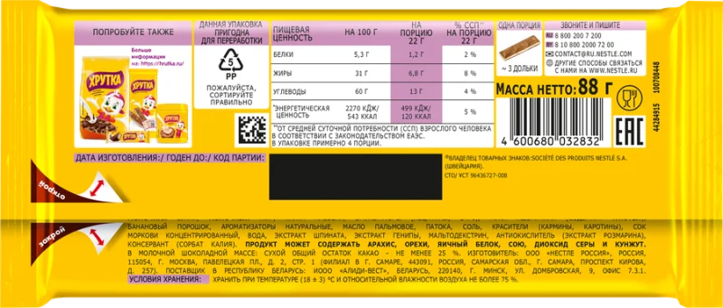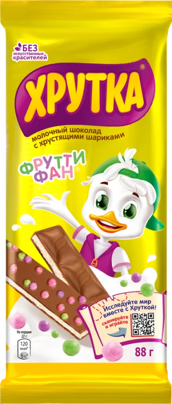 Шоколад молочный ХРУТКА со вкусом фруктовый микс и банан, с хрустящими шариками, 87г